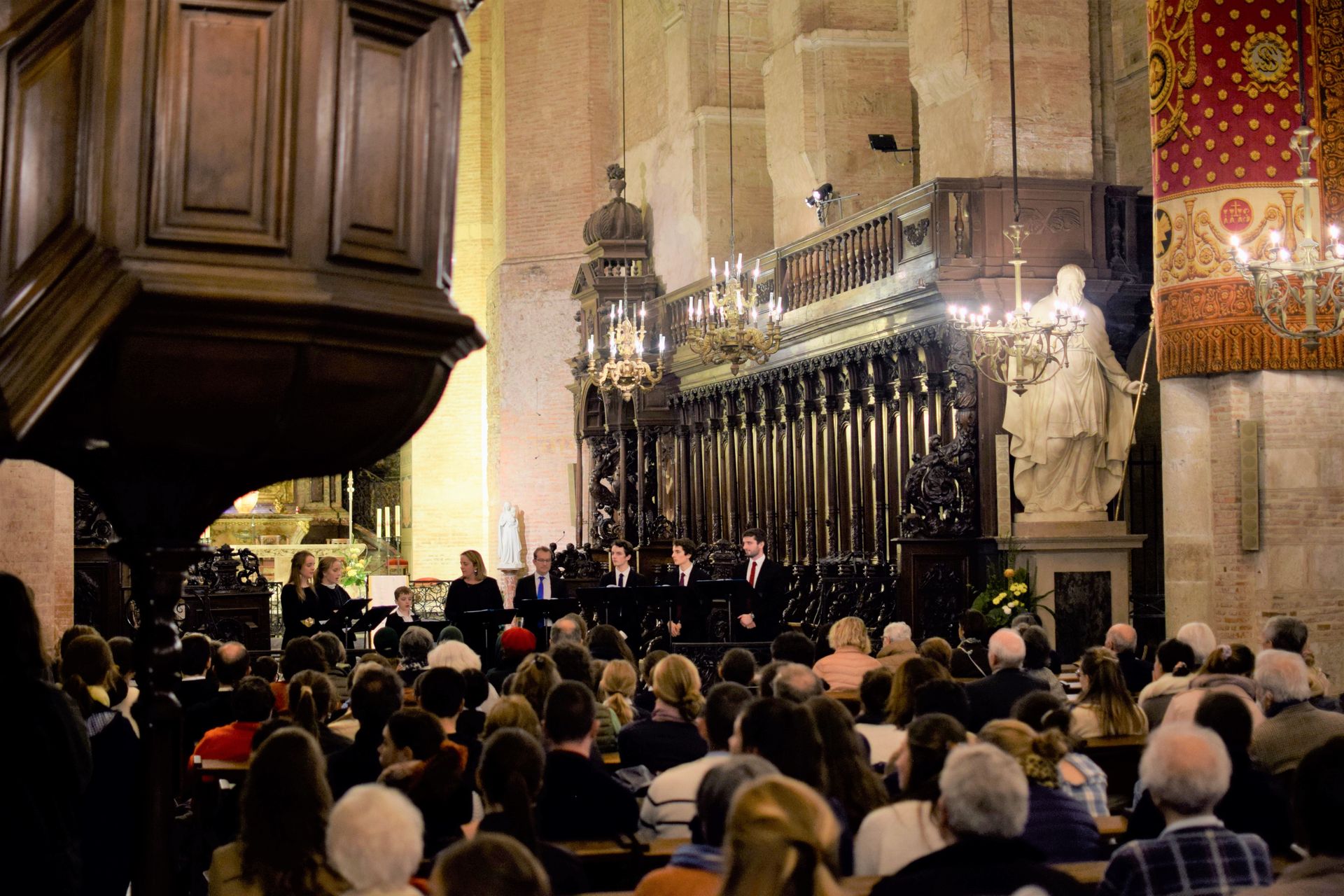Nous avons une prédilection pour la musique sacrée et chantons donc a capella en polyphonie.